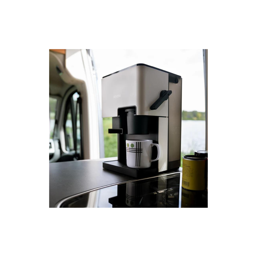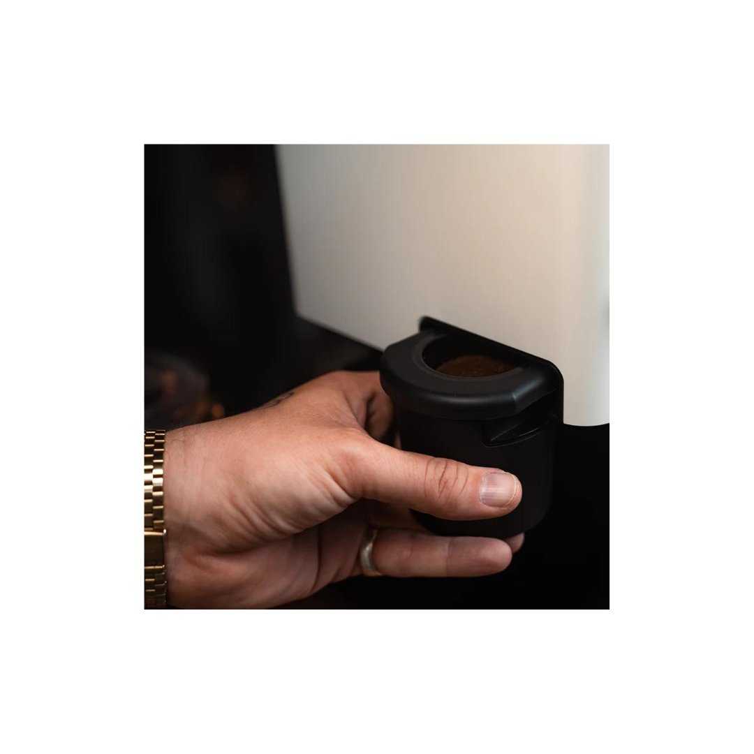 - Pēc malšanas, konuss tiek pārvietots uz kafijas gatavošanas pozīciju, gluži kā klasiskā kafijas aparāta portfiltru. Kad tas ir nofiksēts, pieskaroties displejam, tiek uzsākta kafijas pagatavošana.