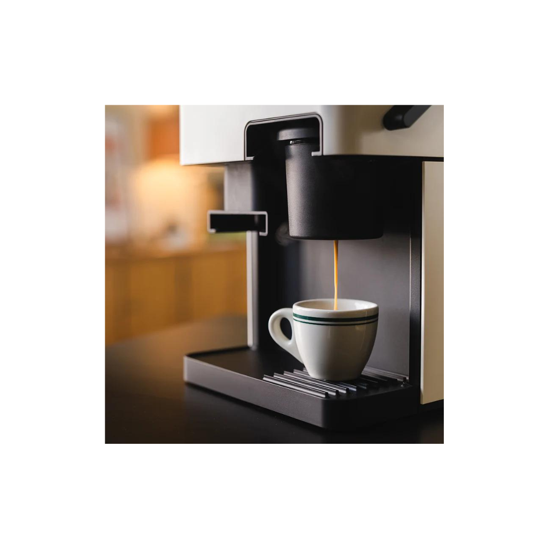 - Inovatīva sistēma, kas aizstāj klasisko kafijas pagatavošanas bloku vai portafiltru ar konusveida piltuvi. Šis risinājums nodrošina ērtu un tīru kafijas pagatavošanas procesu.